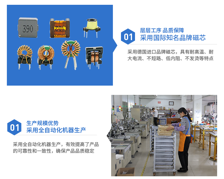 1.采用铁粉芯、锰锌、铁硅铝、非晶等等材质,以产生超大的电感量,高电流,防干扰对策