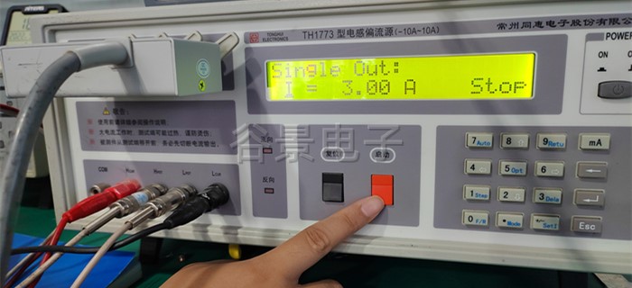 4、按测试仪器上的红色启动按钮,开始加载电流,此时能看到感值随着电流的变化在变化,这个时候要做好相应的数据记录;