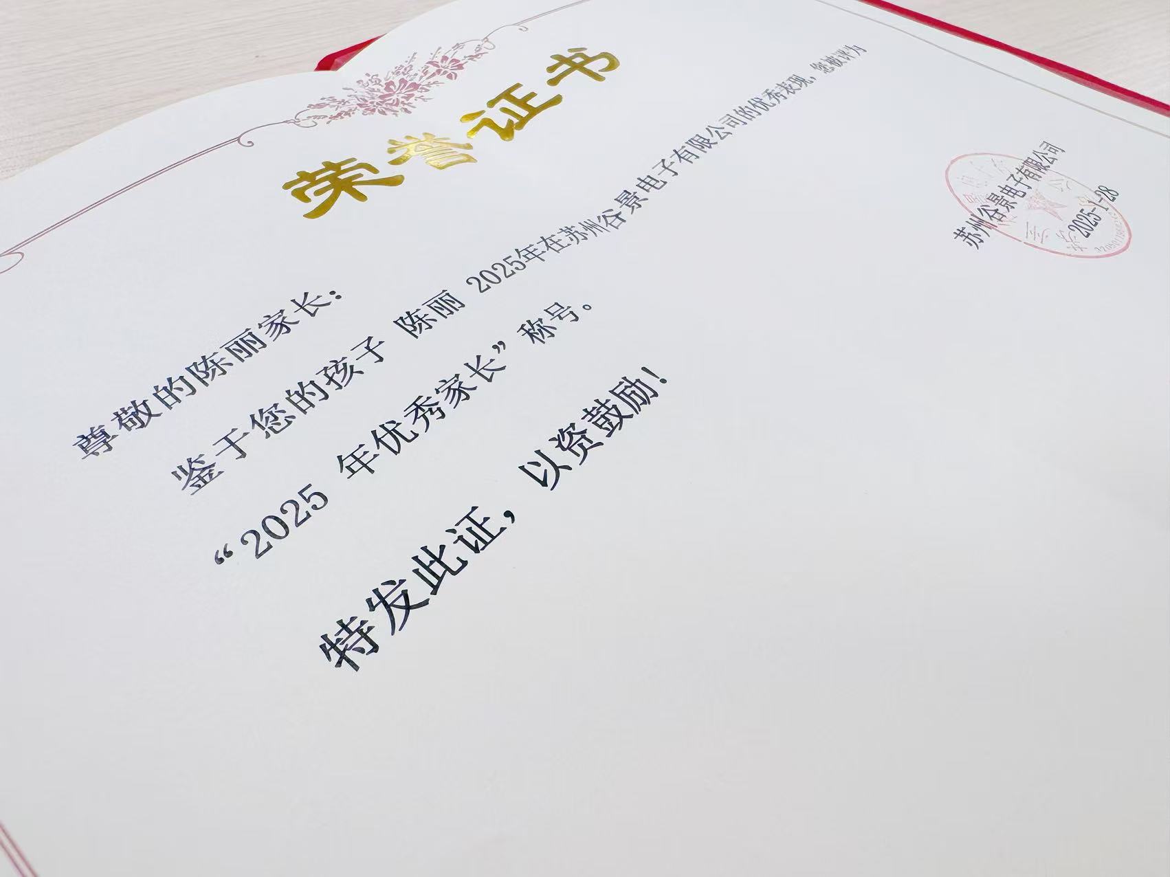 在谷景电子,我们深信每一位优秀伙伴的成就,背后都离不开家庭的支持与滋养。自2019年起,我们每年都为优秀员工设立“父母养老金”专项福利。这一举措,源自一份质朴的初心:既是对伙伴一年辛勤工作的温情“汇报”,更是向其背后默默付出的家庭致以最深的敬意与感恩。