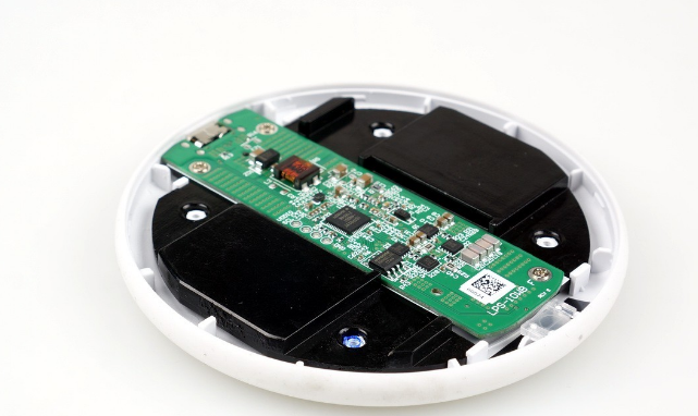 拆开后可以非常清晰的看到其中的电路板以及无线充电电感线圈,尤其是电路板上镶嵌的密密麻麻的电子元器件,电容、电阻、变压器、控制器、高频电感以及电感线圈。